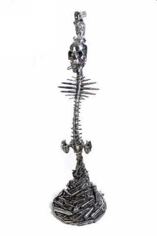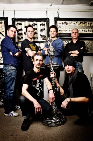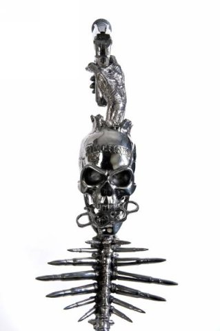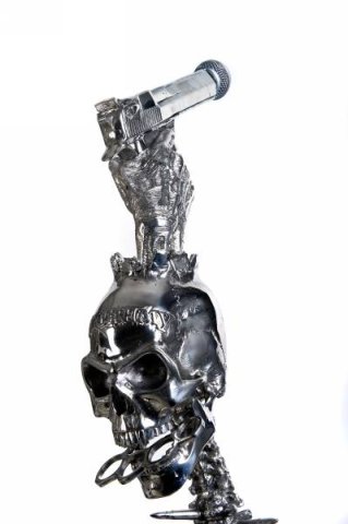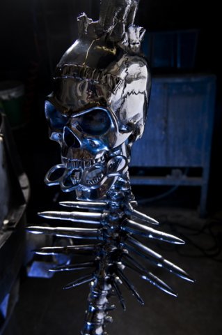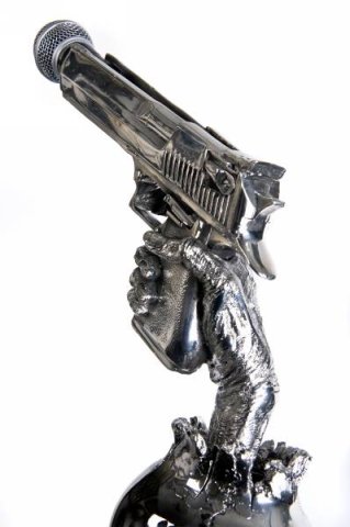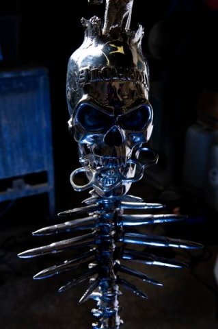 The microphone stand created by The Alchemy Studios for the metal band Five Finger Death Punch.